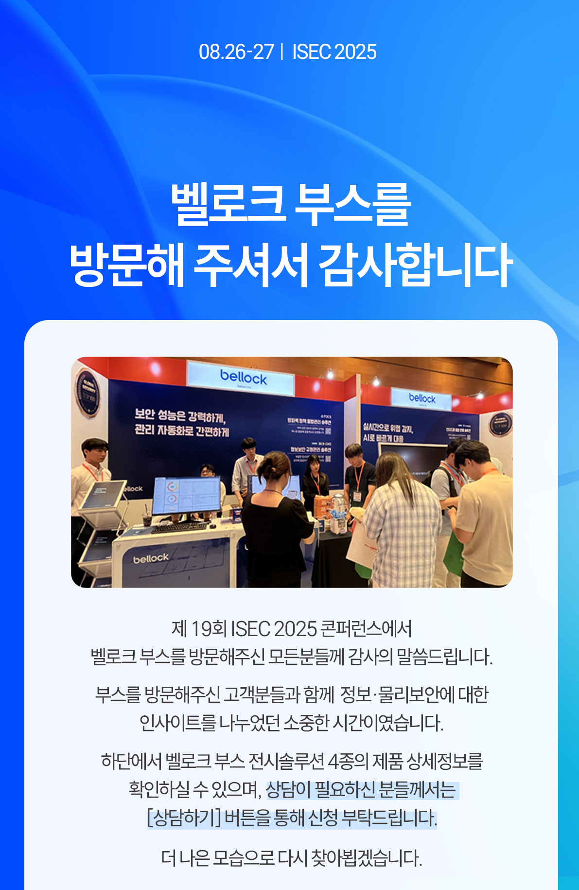 (광고)[ISEC 2025] 벨로크 부스를 방문해 주셔서 감사합니다💙(~상담신청 이벤트 진행중)